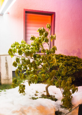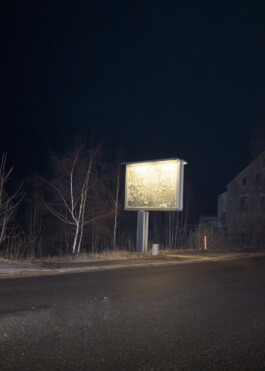 Annemie Martin, who lives in Berlin, photographs Chemnitz. Her pictures are sketches of her approach to a foreign city. Emptiness and decay become spaces of possibilities - also and perhaps especially for the few young people. An evergreen plant in the snow, a bust of Karl Marx on corrugated iron, a lonely illuminated billboard without a banner: Martin's works draw a melancholic, almost romantic atmosphere of dreariness. They are not a description of a place, no working off of stereotypes of the East, no sober document. They are fictional, but true.